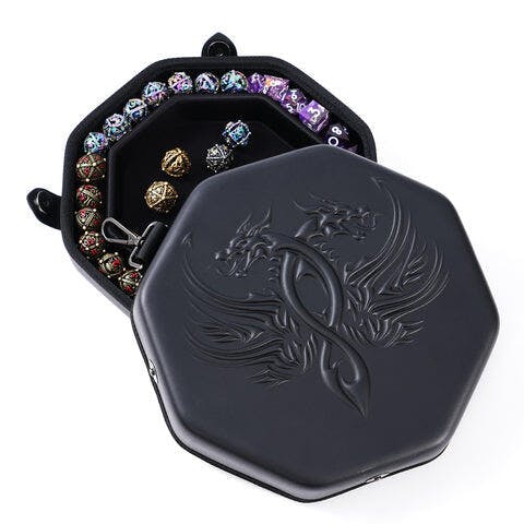 - Stunning Detail & Artwork - Masterful artwork, unique to Soar Forge depicting a beautifully embossed Twin Dragon on a smooth and spotless, black PU leather lid, gives this dice tray a unique and luxurious look.