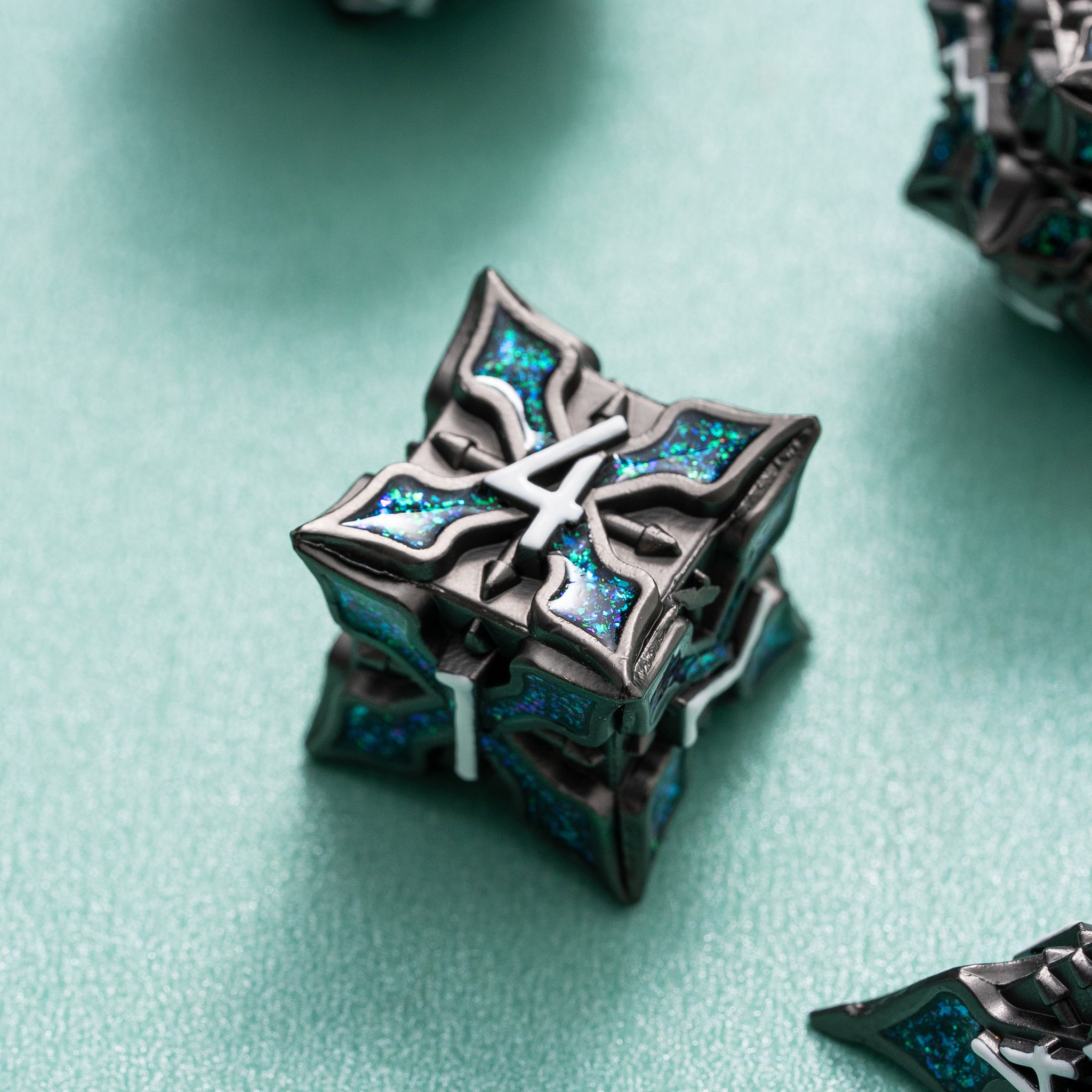 ⚜️ MYSTICAL PRESENCE - Command the table with these weighted metal dice artifacts. Each face displays crystal-clear numerals through our premium precision etching process. The distinctive geometric patterns catch light dramatically while maintaining perfect readability.