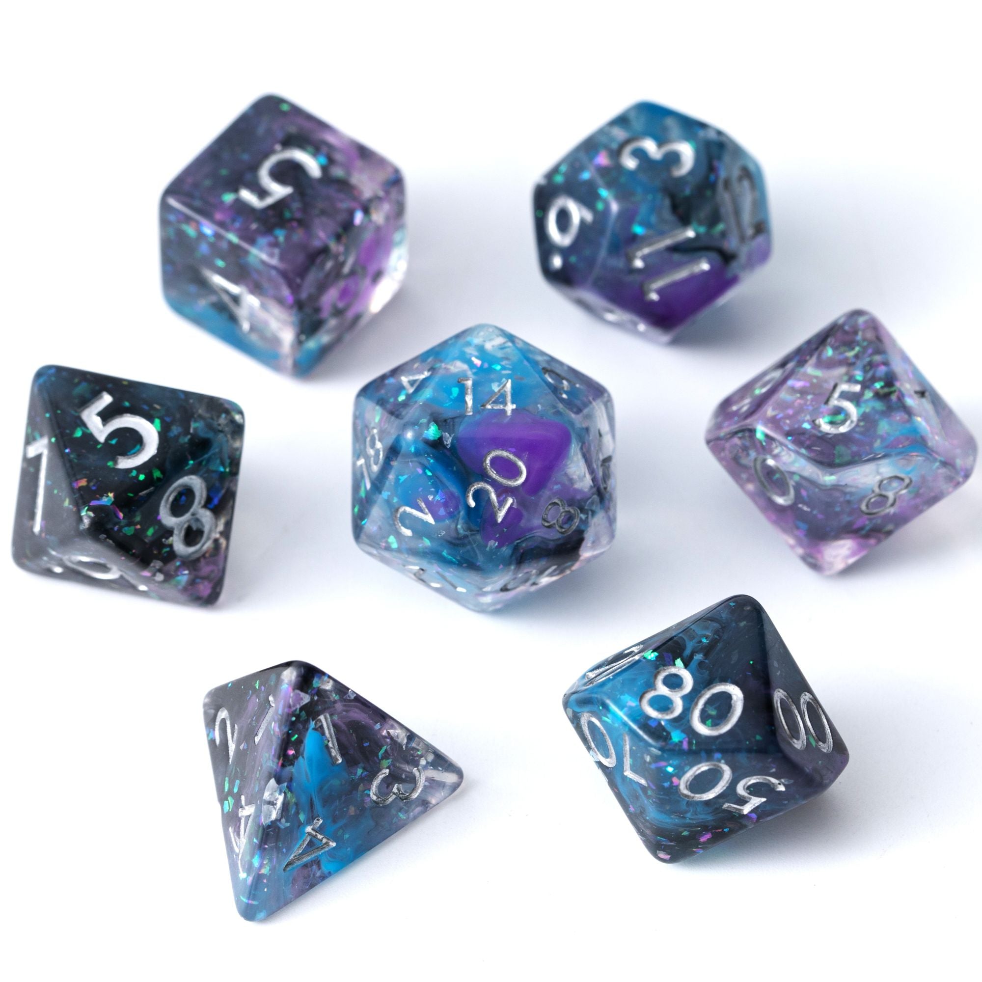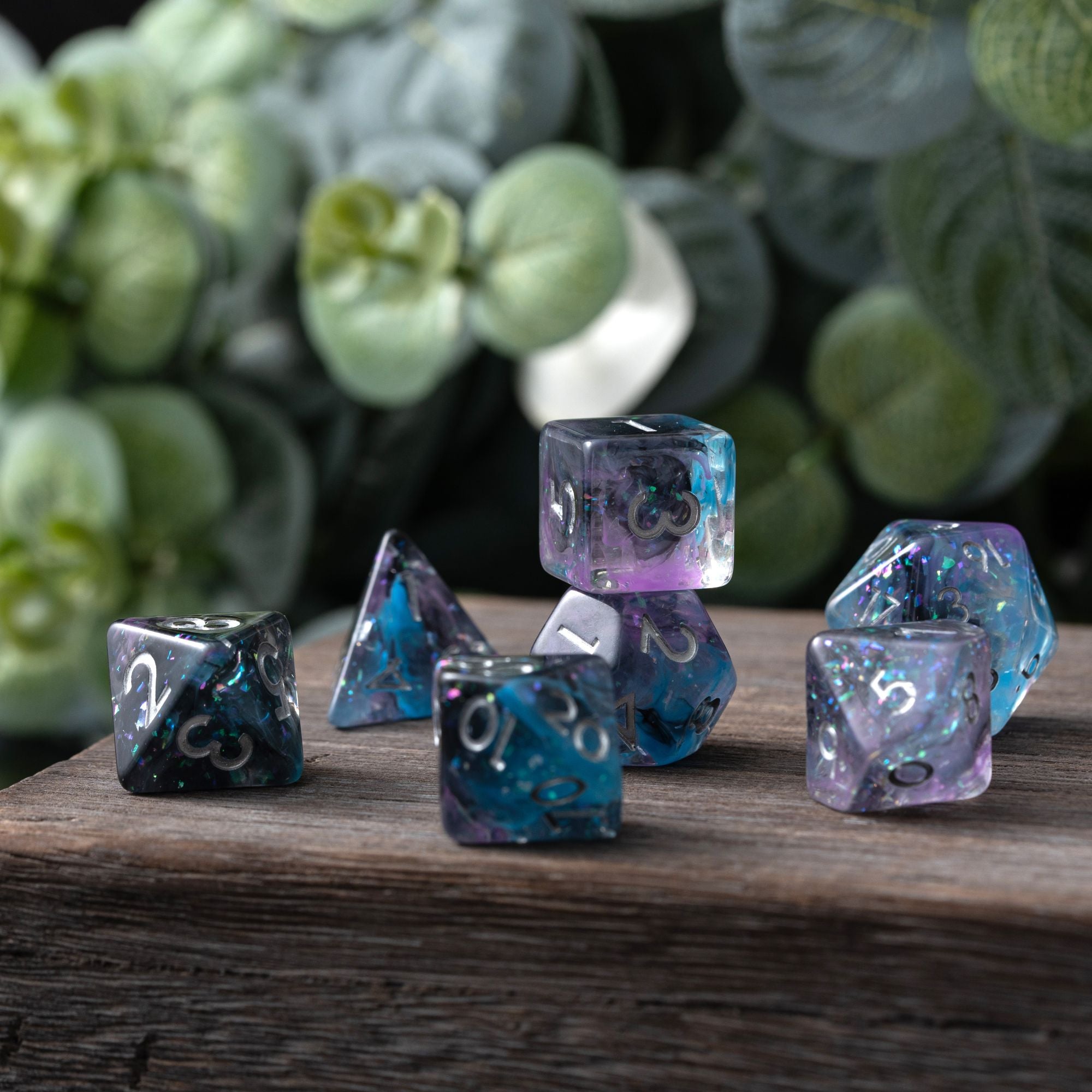 ✨ Eye-Catching Resin Blend: Each die features a mesmerizing mix of layered resin, and shimmering glitter, resulting in truly pretty dice that brings character and magic to every roll.